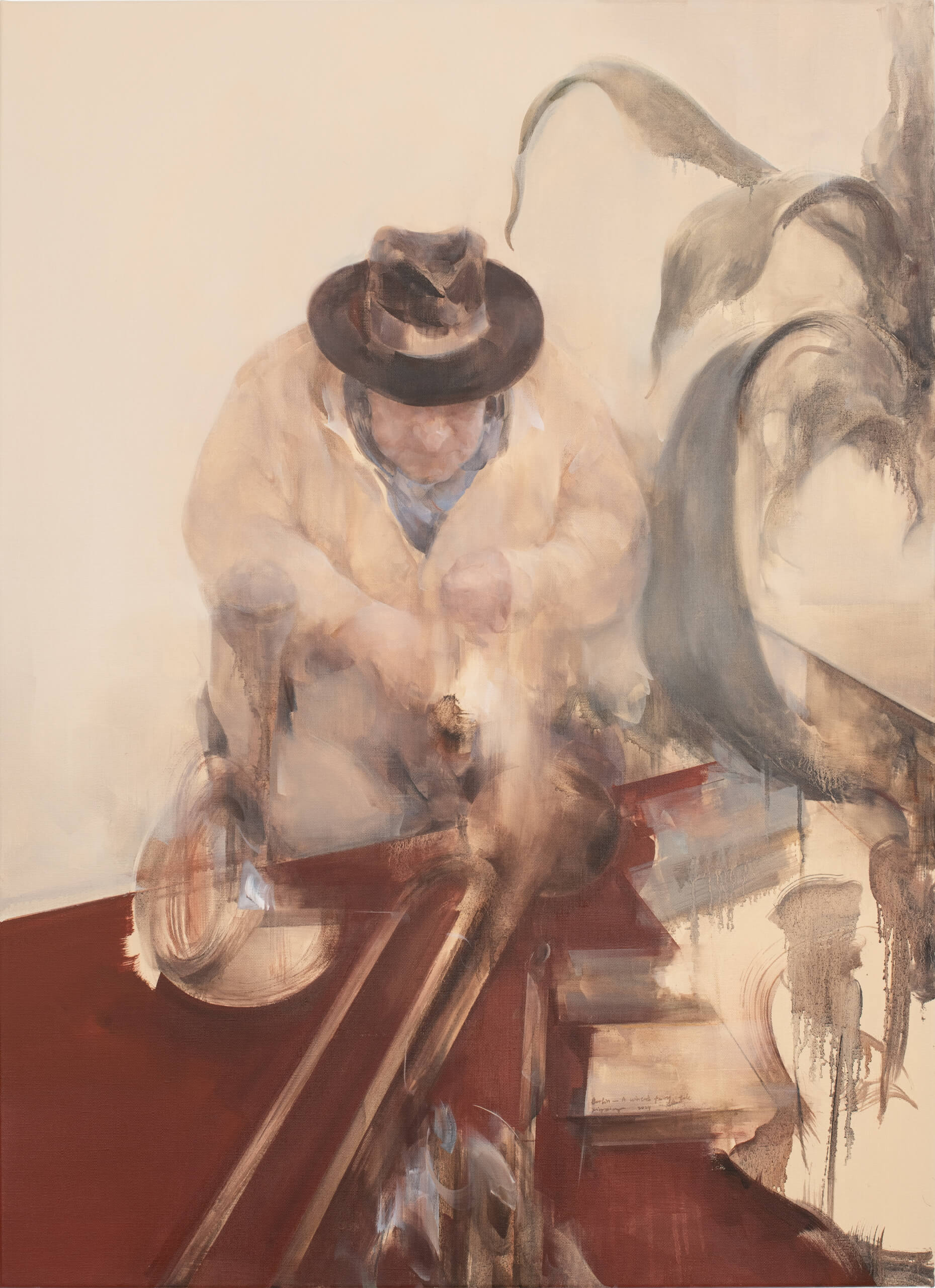 此时在科恩菲尔德画廊(Kornfeld Gallery)展出的作品,就像是从一段短暂的生活日记中撕下的篇章。它们创作于我去年十月至十二月在柏林进行艺术家驻留期间,共包含十四幅油画——少部分画在木板上,多数画在画布上。事实上,这是我首次在柏林参与驻留项目。它让我得以不再以游客的视角,而是以一种“临时居民”的身份去体验这座城市。我试图将自己完全沉浸在这个陌生的环境中,并通过绘画,捕捉下它在我内心激起的层层涟漪。旅居柏林期间,有两本书总是在我脑海中萦绕:一本是赫尔曼·黑塞的《荒原狼》,另一本则是米兰·昆德拉的《生活在别处》。抵达后不久,冬天便降临了。日照时间的骤减,加上身处全新环境的冲击,让我陷入了一阵强烈的孤独。我托朋友从国内带来了《荒原狼》,重读之时,有一种豁然开朗的契合感。柏林——这座汇聚了艺术家、流亡者与边缘人的城市——简直就是一座属于“荒原狼”的城市。它犹如一面镜子,映照出我内心的孤独与无序。至于《生活在别处》——这本书道出了每一位艺术家内心的渴望。对我而言,柏林成了一种“别处”,一个我曾梦寐以求的远方。然而,就在我短暂逃离日常生活的片刻,我意识到一个残酷却真实的事实:即便是“别处”,最终也会沦为“此处”。那种对远方的渴望并未消亡,它只是变换了落脚点。这十四幅油画正是这些思绪沉淀后的结晶。它们是一张张情感的快照。拼凑在一起,便构成了我柏林时光的一部私人视觉日记。The works on display here at Kornfeld Gallery feel like pages from a short life diary. They were created during my artist residency in Berlin from October to December last year, and include fourteen oil paintings—some on panel , but most on canvas.Actually,this was my first artist residency in Berlin, and it gave me a chance to experience the city not as a tourist, but more like a temporary local. I tried to fully immerse myself in this unfamiliar place, and through painting, I captured the emotions it stirred in me. While I was in Berlin, I always recalled two books :One is Hermann Hesse’s Steppenwolf ,antother is Milan Kundera’s Life is Elsewhere.Not long after I arrived, winter set in. The sudden shift in daylight, along with being in a completely new environment, brought on a wave of loneliness. I asked a friend to bring me Steppenwolf from China, and when I reread it, I felt something click. Berlin—this city of artists, exiles, and outsiders—felt like a city of Steppenwolves. It mirrored the loneliness and chaos I was feeling inside.As for Life is Elsewhere—that book speaks to every artist’s longing. For me, Berlin became a kind of “elsewhere,” a distant place I had dreamed of reaching. But while I did escape my usual life for a moment, I realized something important: even “elsewhere” eventually becomes “here.” That longing doesn’t disappear—it just shifts.These fourteen oil paintings are shaped by those reflections. They’re emotional snapshots. Together, they form a personal visual diary of my time in Berlin.